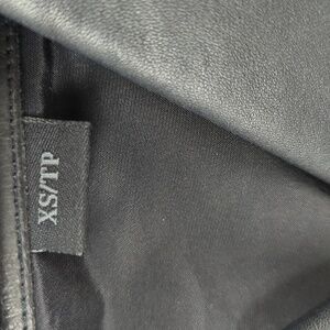 Chic black leather jacket. Modern biker design. Features sleek zippers.