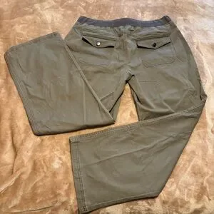 These are in excellent condition with the tags still on. Details like the black buttons and pronounce seams makes this a fun and casual piece to add to your closet. It has a stretchy waist band and big pockets which we all know is rare for womens pants. The color on the original website says grey colored, but it does have a slight tint of green. I