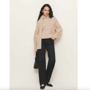 Reformation Spence Scarf Sweater, Wheat, Size Large, Oversized Alpaca Wool Cozy