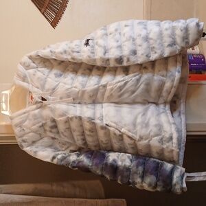Insulated,Nike Stussy, Women's Blue and White Puffer Pull Over Jacket Sz.L