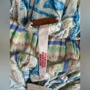 Free People Santorini Print Puff Sleeve Empire Waist Long Cotton Tunic Top NEW L
