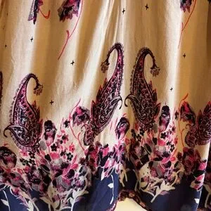 Elegant dress with paisley design. It is in great condition, there is a slight snag on the back shoulder (pictured). This would be perfect for a warm fall day, paired with some black boots. I