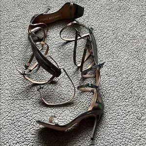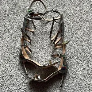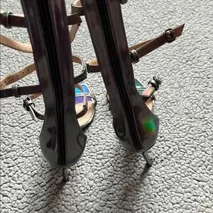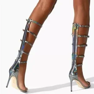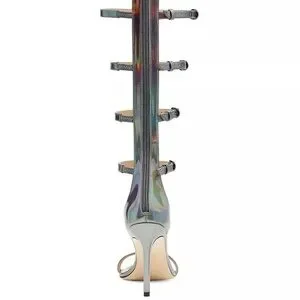 The NUDISTCURVE GLADIATOR 100 SANDAL transforms the iconic, minimalist NUDIST sandal design into a full-fledged accent piece. It stands out with five sleek straps that showcase the calf, each designed to be adjustable for a personalized, perfect fit. Meanwhile, its back zipper enables it to be slipped on and off with ease. It is constructed with our new NUDIST construction featuring a curved back and a slightly angled 110-mm heel that is specially engineered for a comfort without sacrificing style and finished with a sleek square toe. This statement-making stiletto exemplifies high fashion and high function. It is featured in the Holiday 2021 Campaign, Moment to Shine.
