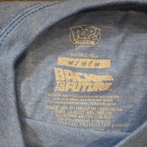 This t-shirt features a fun graphic design in a vibrant blue color. Perfect for Back to the future fans, this shirt combines comfort and style.