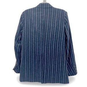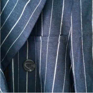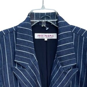 NEW! Free People Ashby Blazer Linen Navy Double-Breasted Pinstripe Size Large.
