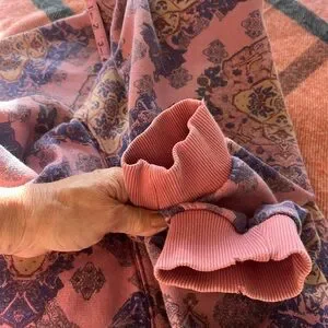 Love this print but I’m personally ready for a new vibe hoodie. Gently worn a few times I must say that I received compliments every time I did this and so will you. Measurements in the photos. The torn look is how these hoodies roll. Check the FP website for yourself.