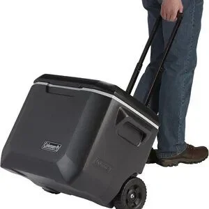 EASE OF TRANSPORT: With its durable wheels, this cooler on wheels can easily navigate any terrain, making it the perfect choice for a beach cooler with wheels or a travel cooler for car