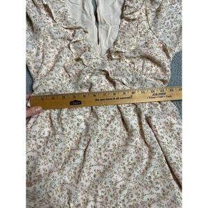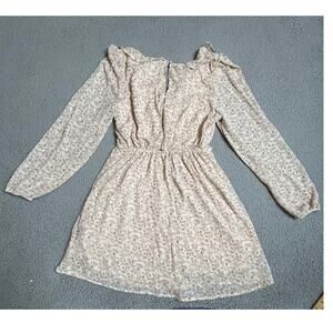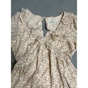 American Eagle Mini Dress Small Milkmaid Ruffle Long Sleeve Floral Pink Cottage