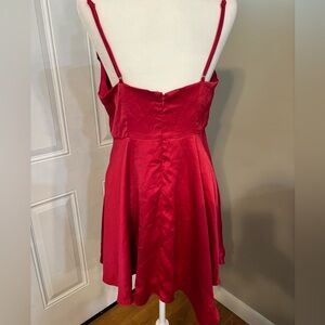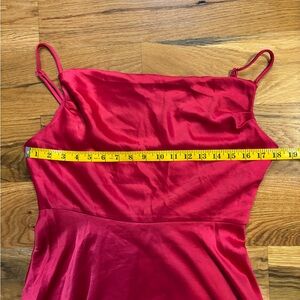Chic red midi dress with a flattering fit. Perfect for stylish outings.