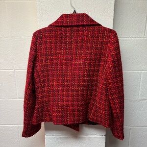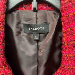Elevate your style with this chic red tweed jacket from Talbots. Perfect for any occasion, this jacket combines elegance and comfort.