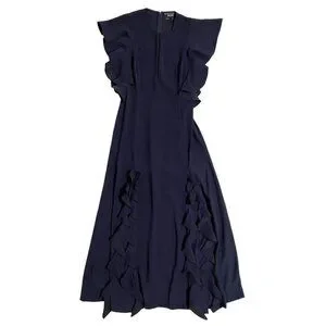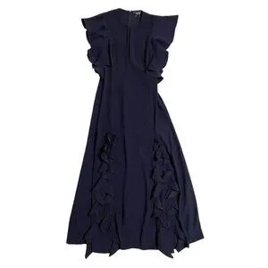 SACHIN & BABI NOIR Navy Blue Ruffled Illiana Dress Retail $850