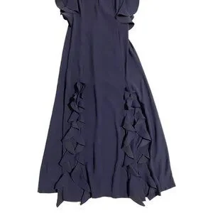Sachin & Babi Noir Navy Blue RUFFLED Illiana Evening Gown Dress Sz 10 NWT