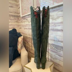 Berry by Nanette Lepore unique OTK suede boots that will set any outfit apart. These unique boots have embroidered detail at the top that is nothing but usual. Runs true to size.