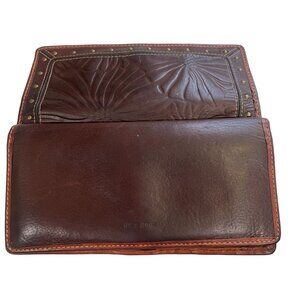 Fossil Leather Tooled Floral Wallet Studded Western Boho Rustic Vintage