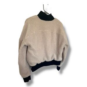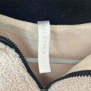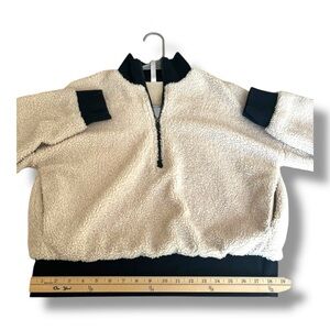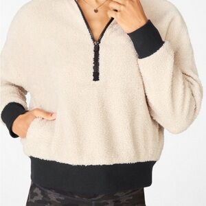 Fabletics Dream Polar Fleece Pullover 1/2 Zip Cream Black Cropped Small Pockets