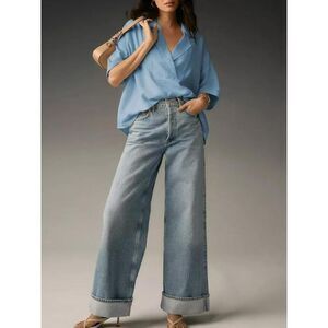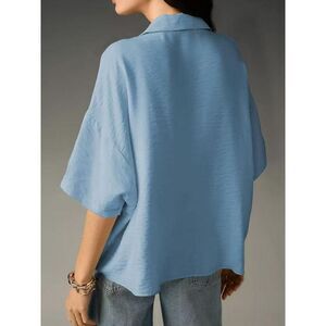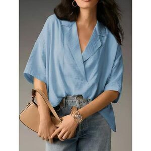 Everyday the Label Relaxed VNeck Cotton Shirt Women Sky Blue Blouses & Shirts