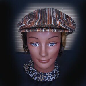 Driving Hat Cotton Corduroy, Brown Rust Stripes, NOT a Golf Hat or Newsboy