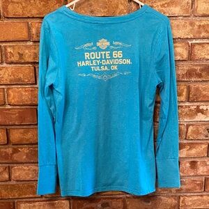 Harley-Davidson Aqua Blue Long Sleeve with Vibrant Graphic