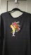 Elegant black tunic with a colorful floral and clown motif. Ideal for casual outings.
