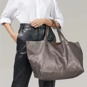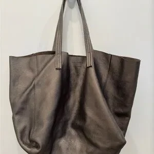 KURT GEIGER Metallic Slouchy Leather Tote Bag in Silver