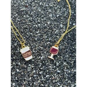 Gold Plated Coffee Charm Necklace and Gold Plated Red Wine Charm Necklace