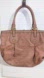 Laid flat measurements are approximately 14 inches across at the top and across the bottom goes up to about 15.5 inches, width is approximately 4 inches, height is approximately 12 inches with a strap drop of 6.5 inches. This is like a hobo bag style satchel, so measurements might vary by an inch depending on if you have a purse organizer in it or how much you have in the purse as it weighs it down/stretches it. This is a beautiful toe/nude purse or like a darker blush pink. It has gold, toned, GG studded emblems on the front and back. There are a few areas of color transfers, scuffs, and creasing throughout, and the inside has a mild amount of stains.