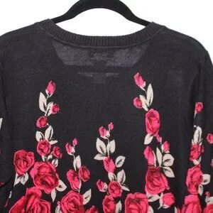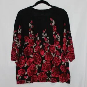 Rebecca Malone Woman Red and Tan Roses on a Black Crew Neck Sweater