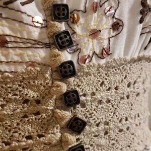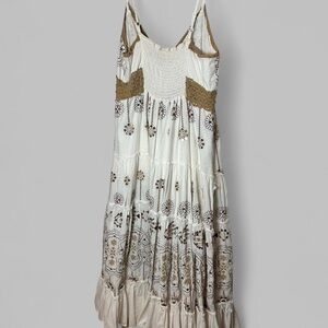 Vasna White and brown embroidered floral lace midi dress with adjustable straps XL