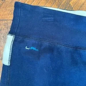 Chic navy leggings with gray details. Ideal for casual wear. Preloved but lots of life left.