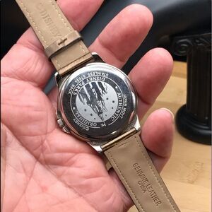 Ladies authentic Disney watch w/silhouette of Mickey on dial face/leather band