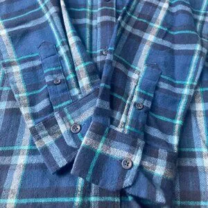 A super soft flannel shirt with spread collar, long sleeves, patch pockets at chest, and a button front.