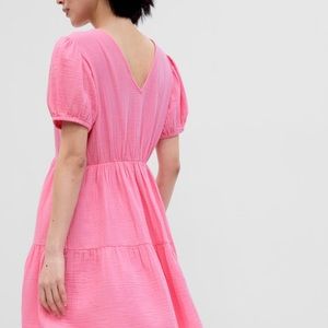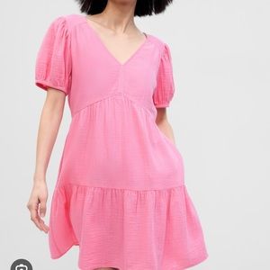 GAP Super soft pink gauze dress with nice sized pockets. V neck front and back. Short puffed sleeves. XXS