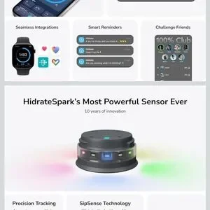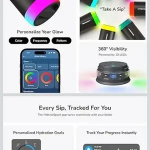 Smart water bottle with LED base. Black color. Track your hydration with the app.