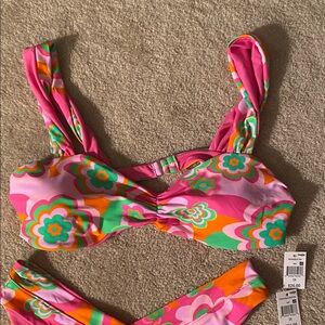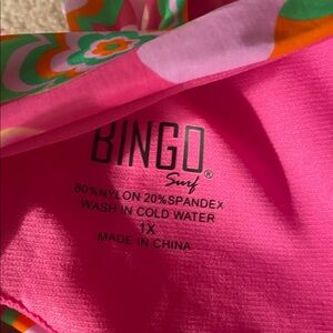 Size 1XL NWT tropical bikini by Bingo swim wear. V front bottle top has removable pads