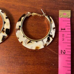 White and black hoop earrings with some transparent areas.