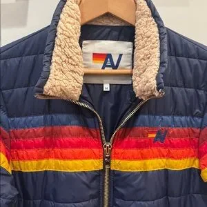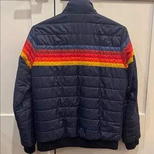 Our latest 60gm 5 stripe jacket is the new super light version of the original. This jacket is a great layering piece for all conditions. We recommend it for concerts, hikes, post surf sesh, travel, sunsets, sunrises, morning coffee with friends, dune buggy excursions and long walks with your dog. You can sleep in it, eat in it, make out in it or even use it as a pillow if you get locked out of your house. This jacket is extremely comfortable, breathable, warm and packable enough to stuff in your backpack or purse. The exterior is our legendary, super soft and durable nylon with a coat of water repellent just in case you get caught in a storm. The insulation is Primaloft gold 60gm to keep you warm without weighing you down. Get ready to turn heads everywhere you go.