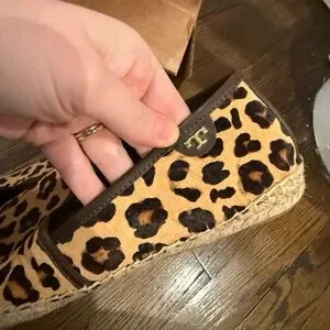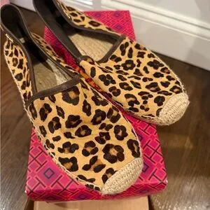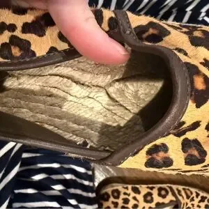 Stylish espadrilles with a bold leopard pattern. Perfect for a trendy look.