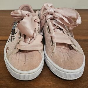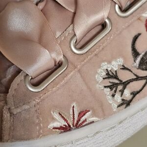 Puma Heart Hyper Peach Velvet Floral Embroidery Sneakers Women's Size 7.5