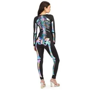 TIPSY ELVES ONE PIECE ZIP UP FITTED SKELETON JUMPSUIT Women's XS IREDESCENT