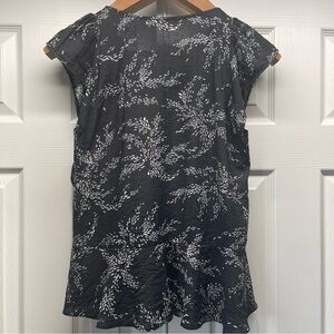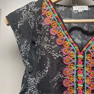 THML Black Blouse Size Medium Colorful Embroidery Flutter Sleeves V- Neckline