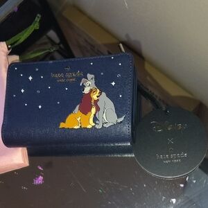 Charming Kate Spade wallet featuring Disney's Lady and the Tramp. Starry blue design. Includes pink dust bag.