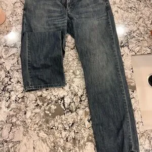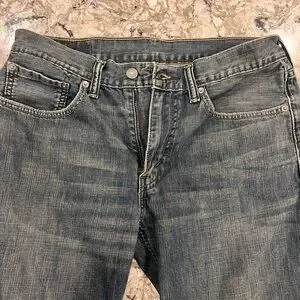 Classic Levi's straight jeans in dark gray. Timeless style and comfort.