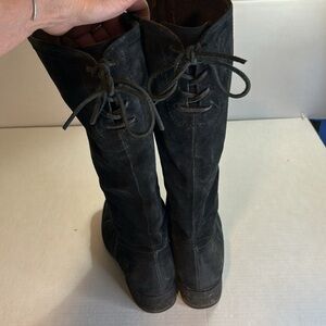 Born Hayden high riding boots, black suede, leather upper, side zip knee-high boots great condition a beautifully fitted silhouette with back lacing detail details zip up simplicity great boots, comfortable checkout pics comment with any questions size 9.5
