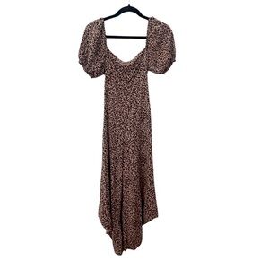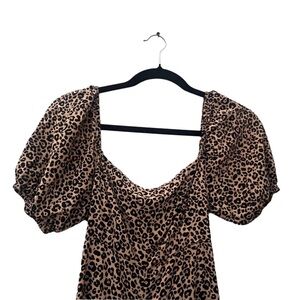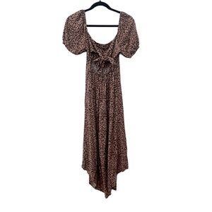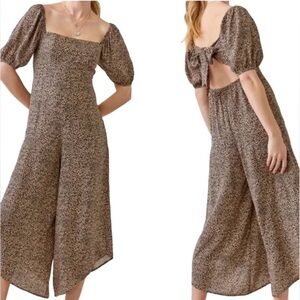 Francesca’s Leopard Print Smocked Barrel Leg Jumpsuit Size XS Forest Fairy