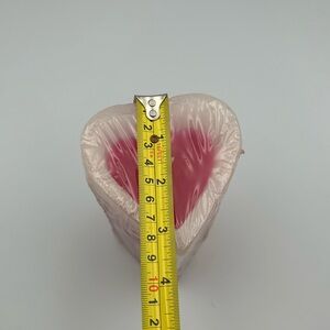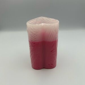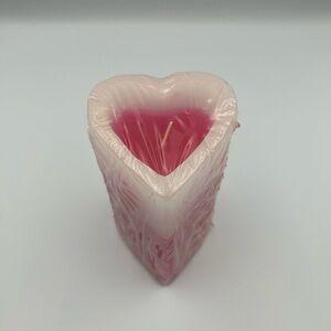 Add a touch of love to your home with this heart-shaped candle. Featuring a beautiful blend of pink and white colors, it's perfect for creating a cozy atmosphere.