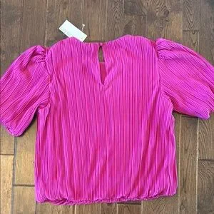 Elevate your style with this vibrant pink pleated top. Perfect for any occasion, this top offers a chic and comfortable fit.