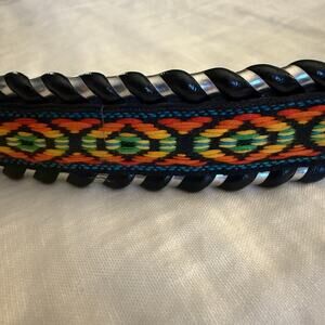 vintage vegan leather embroidered belt, black w/ silver buckle, M