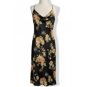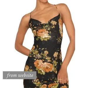 NWT Lulus Petal Prowess Black Floral Cowl Midi Slip Dress S