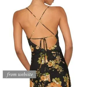 Steal the show in this NWT Lulus "Petal Prowess" midi! The perfect blend of edgy and romantic, this dress features a dark floral print and a silky slip silhouette. The lace-up back and draped cowl neckline add a touch of whimsigoth flair, making it ideal for a wedding guest, date night, or cocktail party.