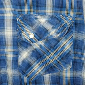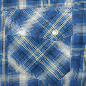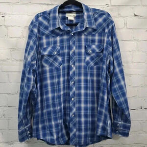 Wrangler Wrancher Pearl Snap Large Blue Plaid Shirt Western Cowboy Cotton Blend 2x
